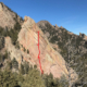 Looking uphill to the left of Captain Beyond, Beginner’s Mind (5.12b R, trad) is located 40 feet past Captain Beyond. The next route is Better Red than Dead (5.12b, PG13, mixed bolts/gear), then Rodent Lust (5.12d sport), Scorpius (5.11a R trad), Vergin’ on Perversion (5.11c mixed), and Perversion (5.9+ trad). More routes exist further uphill on the North Tower.