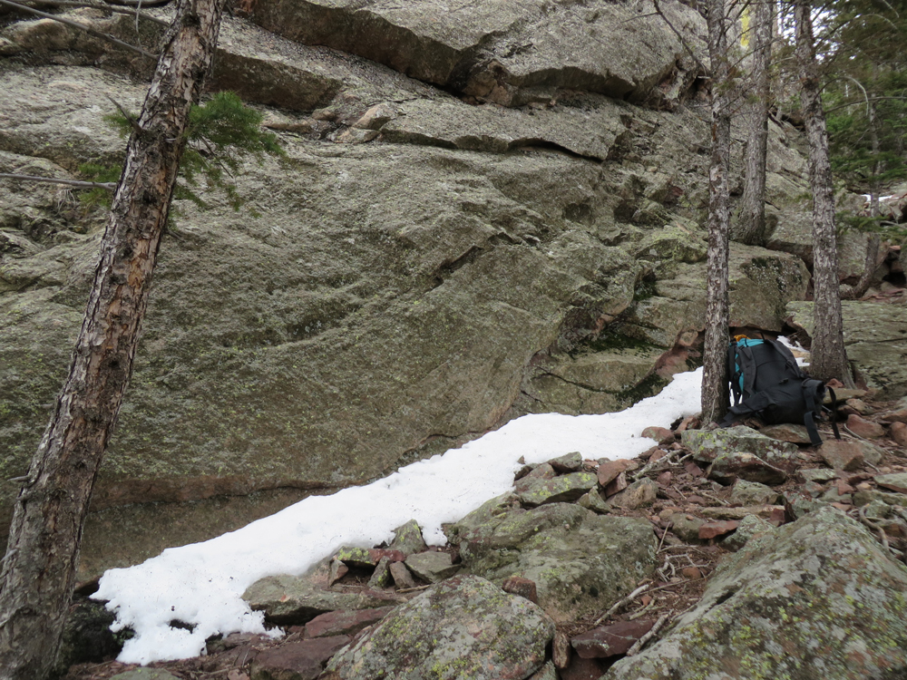 A description of the approach (include approximate distance from the designated trail system, existing “social” or undesignated trails leading to the climb and condition of the trail, and state whether there is a durable surface, such as rock. Include photographs of the approach.): The approach is up the designated trail to the base of Seal Rock, and then up the climbers’ trail to the North side of Seal Rock. This is the same trail used to access all the existing climbs on the North face of Seal Rock. The start of the climb is about 120 feet further uphill than the start for Archaeopteryx. This is also the descent route for all routes on the East face of Seal Rock.