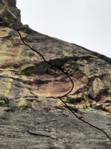 - North Arete: a new proposed two-pitch route that takes a direct line from the center of the North Face to the North summit of Seal Rock. It stays on the right side of the upper arete (around the corner from Archeopteryx) to the summit. This line is the closest to this proposed route as its second pitch climbs below and to the left of this route’s upper anchor.