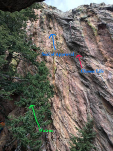The City of Boulder OSMP requires a photocopy or diagram of the rock formation with the proposed route drawn in to be accompanied with the route description.