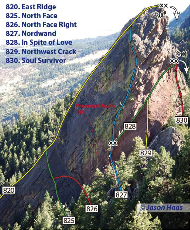 A description of existing routes on the same face of the rock formation, including the number of routes, route names, route grade, type, and approximate distance between routes (a photocopy or diagram of the existing route(s) is also required):