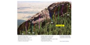 A description of existing routes on the same face of the rock formation, including the number of routes, route names, route grade, type [traditional or bolted], and approximate distance between routes (a photocopy or diagram of the existing route(s) is also required);