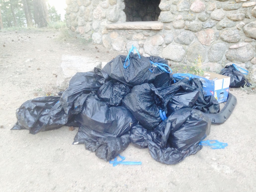 Thanks to everyone who made the 15th annual Trash Bash a big success! This includes the 70+ volunteers, our partners at OSMP, BCC, the Access Fund and the American Alpine Club, and all of corporate sponsors listed below. At the end of the cleanup, volunteers collected bags filled with bottles, glass, paper, cigarette butts, road debris and other waste. Recyclables were separated from other waste. The award for the most unusual piece of garbage went to a “Just Married” sign, though there were some other strong contenders.